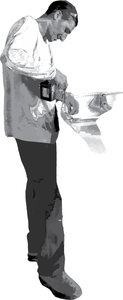 ניסיון ומקצועיות באצבעות אוכל תפוח לארוחת צהרים